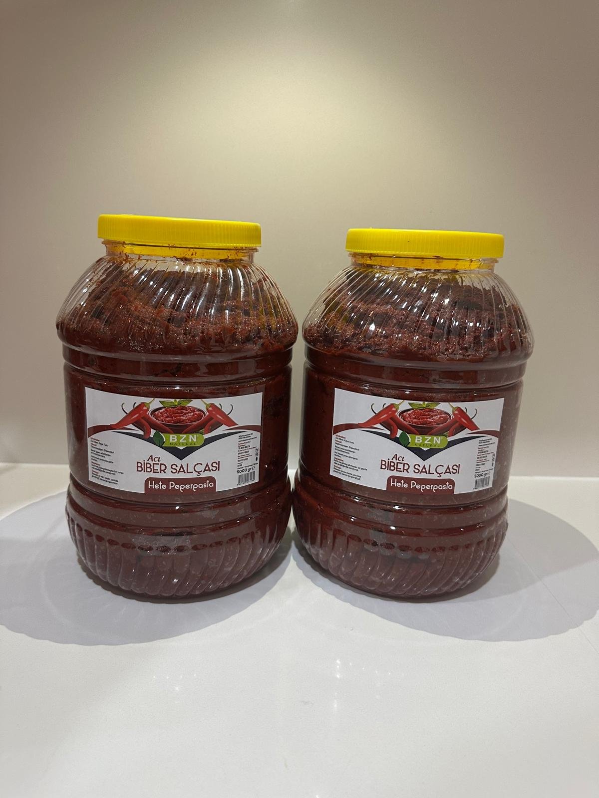 Ev Yapımı Antep Acı Biber Salçası sağlıklı şişelerde sizleri beklemektedir.